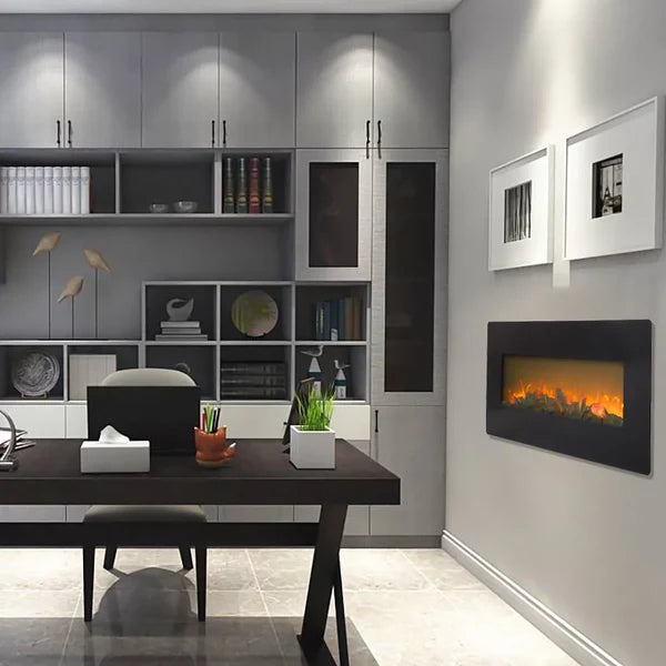 Wall Hanging Fireplace with remote is a portable and durable electric fireplace heater that will heat your place quickly. With 3D technology, this electric space heater could provide you the ambiance of real fire which can make your winter full of warmth. Just come and order it. 3D Realistic Flame Effect. The fire flickering in the electric fireplace diffuses a realistic and pleasant light in the room. Besides being warm, it also brings you a pleasant atmosphere of conviviality and romance. Warm and Comfortable. Dimensions of the electric fireplace - 42" x 4.2" x 17.3"(L x W x H). Purebath Fireplace is an effective space heater with the appearance of a charming antique stove. The 1400W powerful heating capacity in this fireplace can warm a medium-size room within minutes. Three flame level: medium/low/high. Vintage and Elegant. Our wall-hanging heated fireplace features a durable frame and sturdy Wall Hanging design as well as the 1-sided panoramic viewing glass and a tempered glass door that you can open. Provide the ambiance of a real fire and match your home Christmas decoration by creating realistic dancing flames and burning log effects. Gorgeous Flame Effect and Emulation Logs. The emulation log set and ember bed sit in a black fireplace box and feature a realistic dancing flame and a burning log effect. Enjoy all-year-round fireplace views (with or without heat) but require no wasted time, effort, or money. Safe and Trustworthy. Purebath Fireplace is CSA certified, which means our products have passed all tests and met applicable standards for safety. Features: Three flame levels: medium, low and high. Remote control(Batteries included): As it is remote operated, you can breezily adjust flame level around the room. (note: Non-temperature adjustable). Simple installation: Easy installation on wall due to detailed instructions, just a few minutes, quality mounting hardware included. The control panel is easy to understand and use. Save energy: 42-inch perfect size and run on electricity, less cost and maintenance than traditional heating, is suitable for living rooms and apartments bedrooms. Specifications: Model: SF310-42AX. Power: 120V 60Hz 1400W. Operation Method: Body Button and Remote Control. Three Flame Level: Medium, Low and High. Work Decibel: Approximately 45dB. Certifications: CSA. Material: Iron & Glass. Color: Black. Weight: 35.5 lbs. / 16 kg. Package Includes 1 x Electric Fireplace. 1 x Glass Front. 1 x Mounting Bracket. 1 x Remote Control. 1 x User's Manual. 1 x Mounting Hardware Set(2*Small Screw 2*Large Screw 2*Wall Anchor).